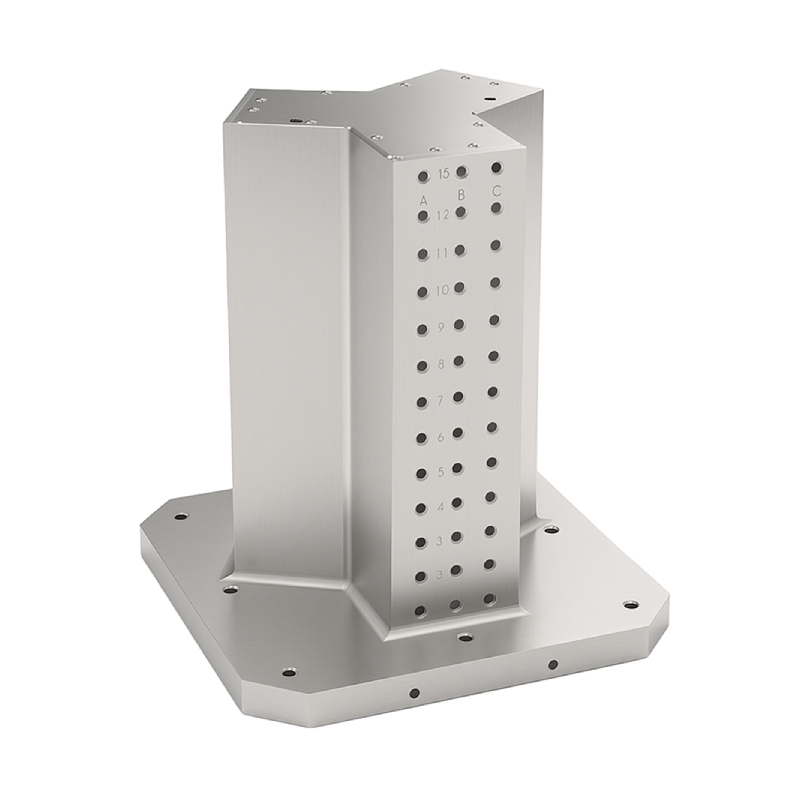 Y tombstones are perfectly suited for three-sided machining operations while maintaining excellent tool clearance, making them ideal for complex, multi-face setups. Depending on your specific application, the corner surfaces can also be utilized for mounting additional components, maximizing workholding capacity. If a smooth, featureless surface is not required, our Y tombstones are available with a range of grid configurations, including the industry-standard 2″ grid, T-slots, or fully customized layouts.