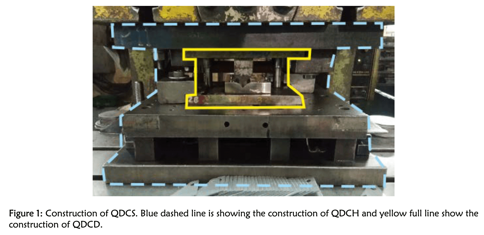 QDCS’in kalıp tasarımı açısından temel fikri, ana kalıp fonksiyonunu (presleme görevi) destekleyici fonksiyondan ayırmaktır. Presleme fonksiyonunu yerine getiren parçalar Hızlı Kalıp Değişim Kalıpları (QDCD) adlı bir montaj grubunda toplanırken, destekleyici fonksiyonu yerine getiren parçalar Hızlı Kalıp Değişimi Gövdesi (QDCH) adlı başka bir montaj grubunda birleştirilmiştir (Şekil 1).